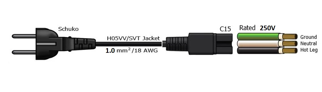 Loại sản phẩm: Schuko CEE7 to IEC C15
