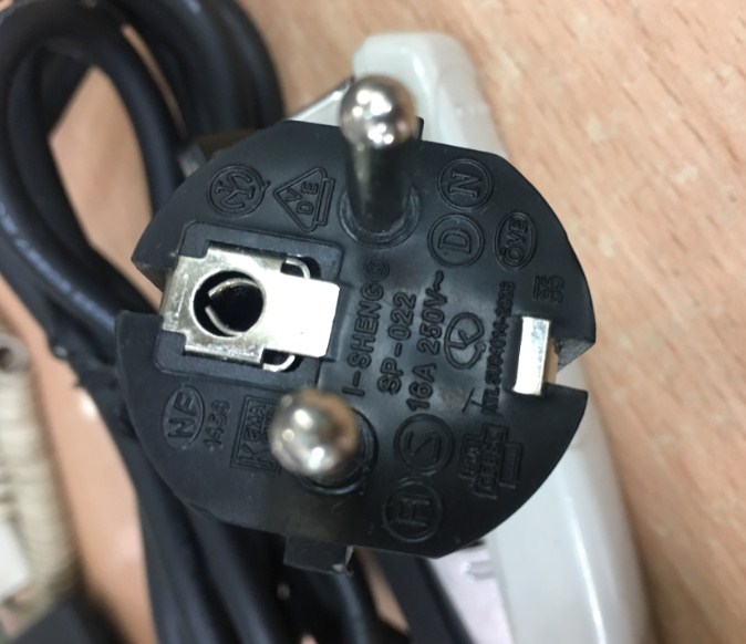 Phích cắm điện: Dây nguồn 2 chân tròn có tiếp địa chân cắm thẳng