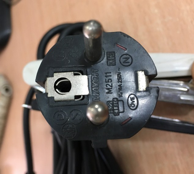Phích cắm điện: Dây nguồn 2 chân tròn có tiếp địa chân cắm thẳng