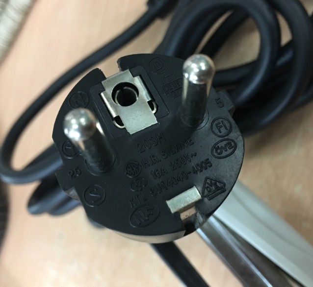 Phích cắm điện: Dây nguồn 2 chân tròn có tiếp địa chân cắm thẳng