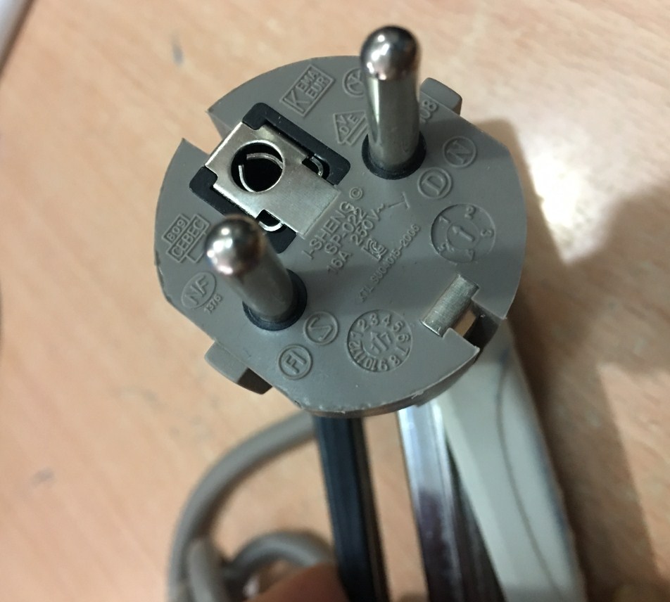 Phích cắm điện: Dây nguồn 2 chân tròn có tiếp địa chân cắm thẳng
