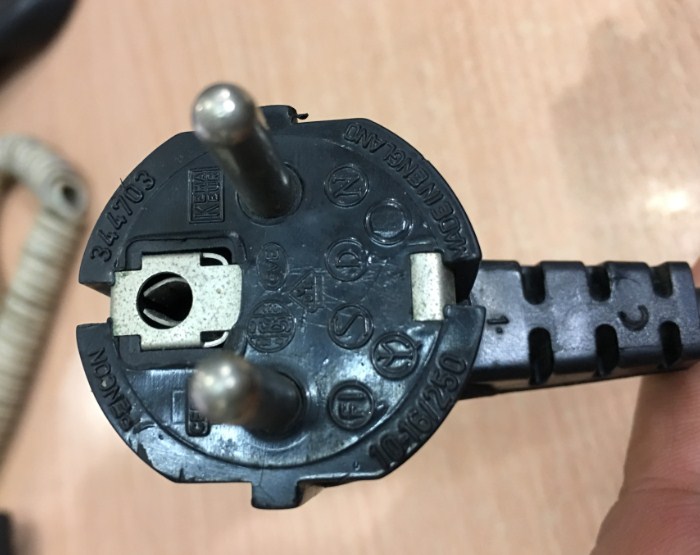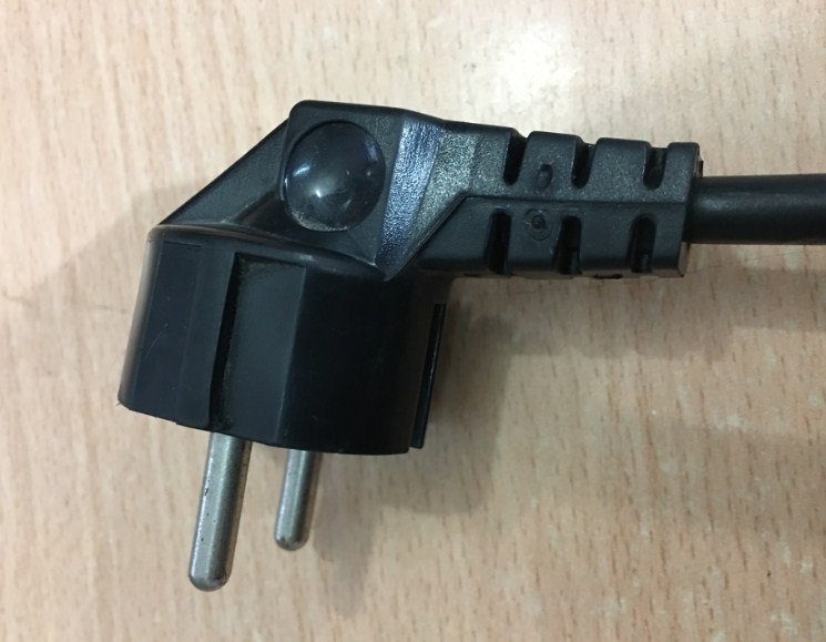 Phích cắm điện: Dây nguồn 2 chân tròn có tiếp địa chân cắm chư L 90 độ