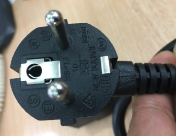 Phích cắm điện: Dây nguồn 2 chân tròn có tiếp địa chân cắm cong chữ L 90 độ