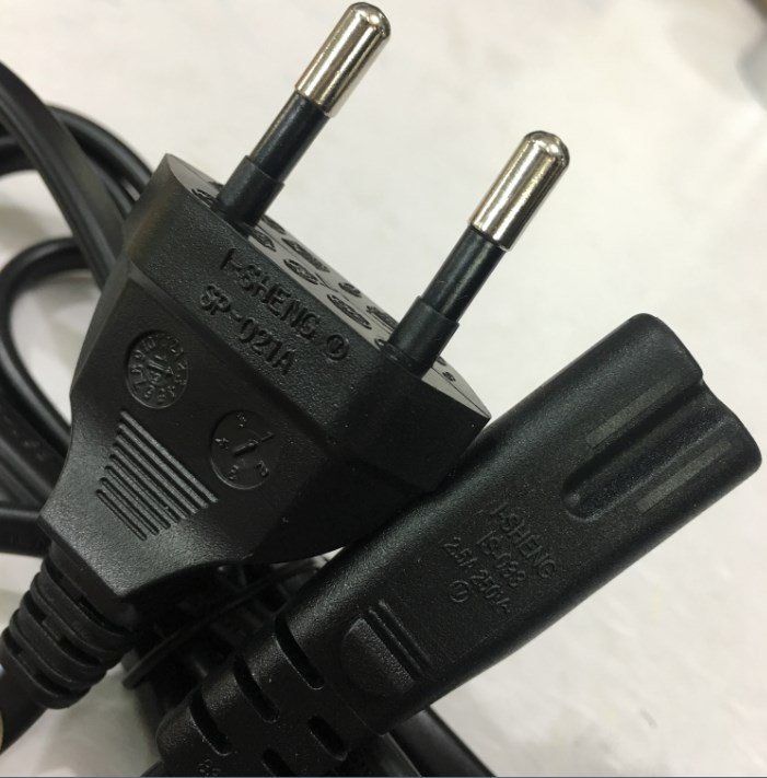 Dây Nguồn Số 8 QK20144 I-SHENG SP-021A IS-033 Chuẩn 2 Chân Đầu Tròn AC Power Cord Schuko CEE7/16 Euro Plug to C7 2.5A 250V 2x0.75mm For Printer or Adapter Cable FLAT PVC Black Length 1.5M