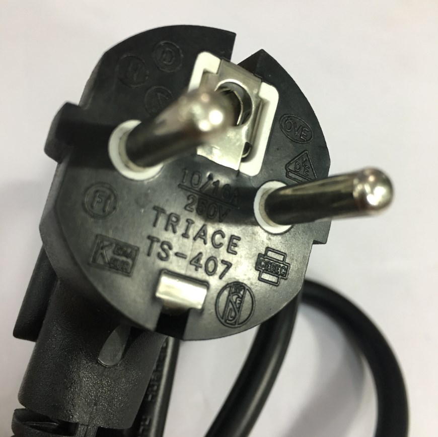 Dây nguồn TRIACE TS-407 là dòng cáp nguồn được đúc bằng máy tương thích với ổ cắm điện chuẩn Việt Nam, Hàn Quốc, và các nước Châu Âu. Dây nguồn chuẩn C13 Châu Âu này cũng được gọi là dây dẫn điện chính CEE7 / 7 Schuko đến C13 hoặc cáp chính Schuko đến C13.