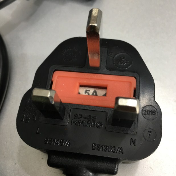 Dây Nguồn UK Plug BS 1363 to RIGHT ANGLE IEC 320 C5 Power Cord I-SHENG SP-62 IS-039 5A/2.5A 250V 3x0.75mm² Length 1.8M