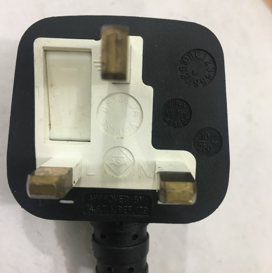 Phích cắm nguồn điện A: Dây nguồn 3 chấu có cầu chì chuẩn cắm Anh vuông phích cắm G không thể quay lại chiều chân cắm (UK Plug BS1363 10A 250V)