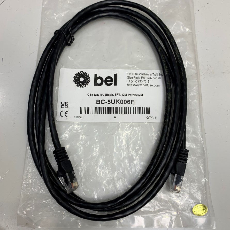 Dây Nhẩy 1.8M 6ft CAT5E Bel BC-5UK006F UTP Networking Cable RJ45 Gigabit U/UTP 350MHz 4PR 24AWG OD Ø 5.5mm Black For Industrial Network Cable