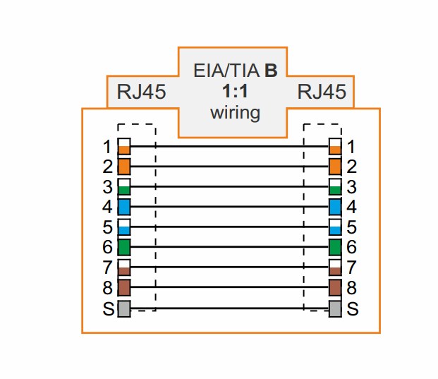 Chuẩn đấu cáp thẳng TIA / EIA-568-B.2-1: T568B: 1-2 / 3-6 / 4-5 / 7-8