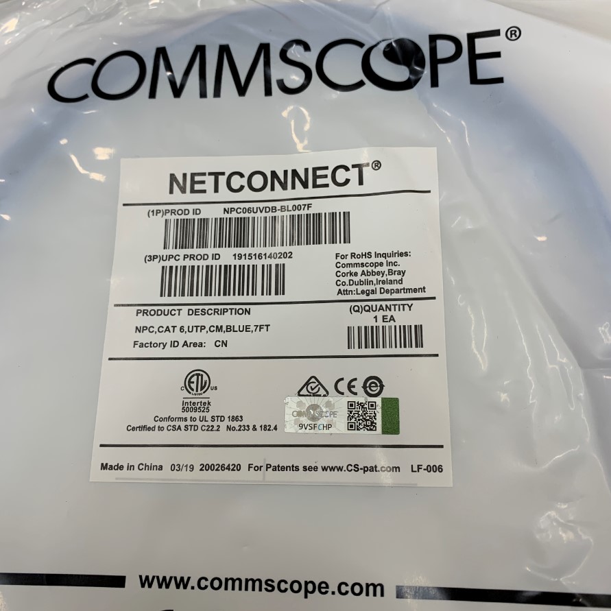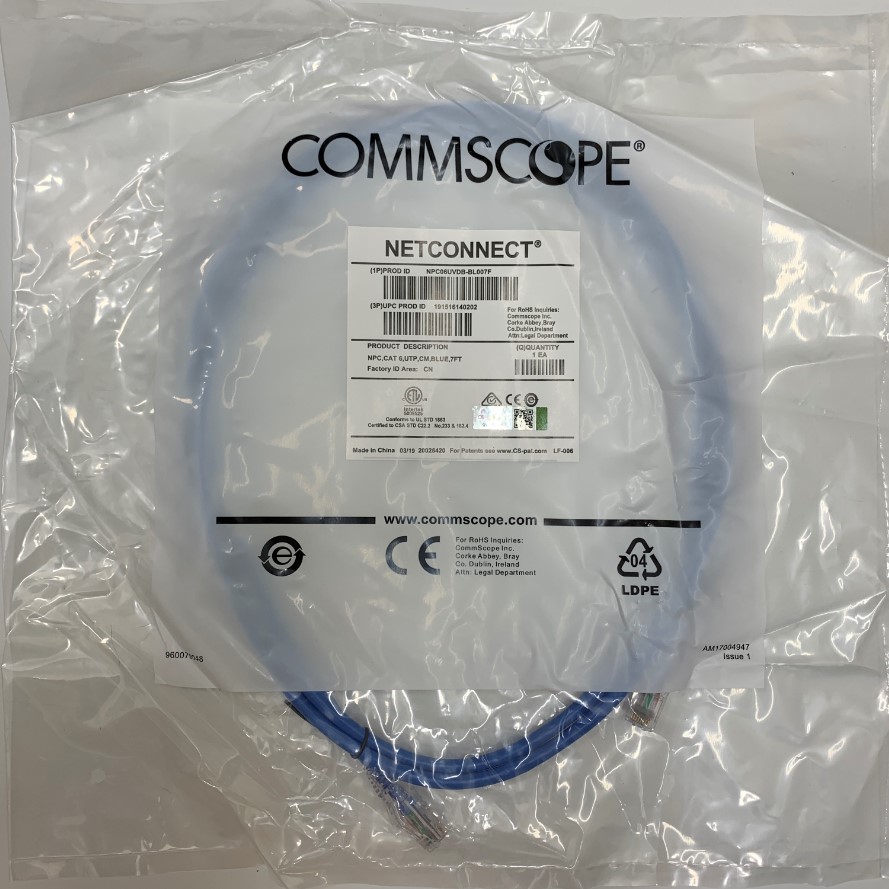 Loại sản phẩm: Dây Nhẩy Chuẩn Công Nghiệp Commscope NPC06UVDB-BL007F UTP CAT6 Gigabit PVC 24AWG Industrial Ethernet RJ45 Network Patch Cord Straight Through Cable Blue Length 2M 7ft