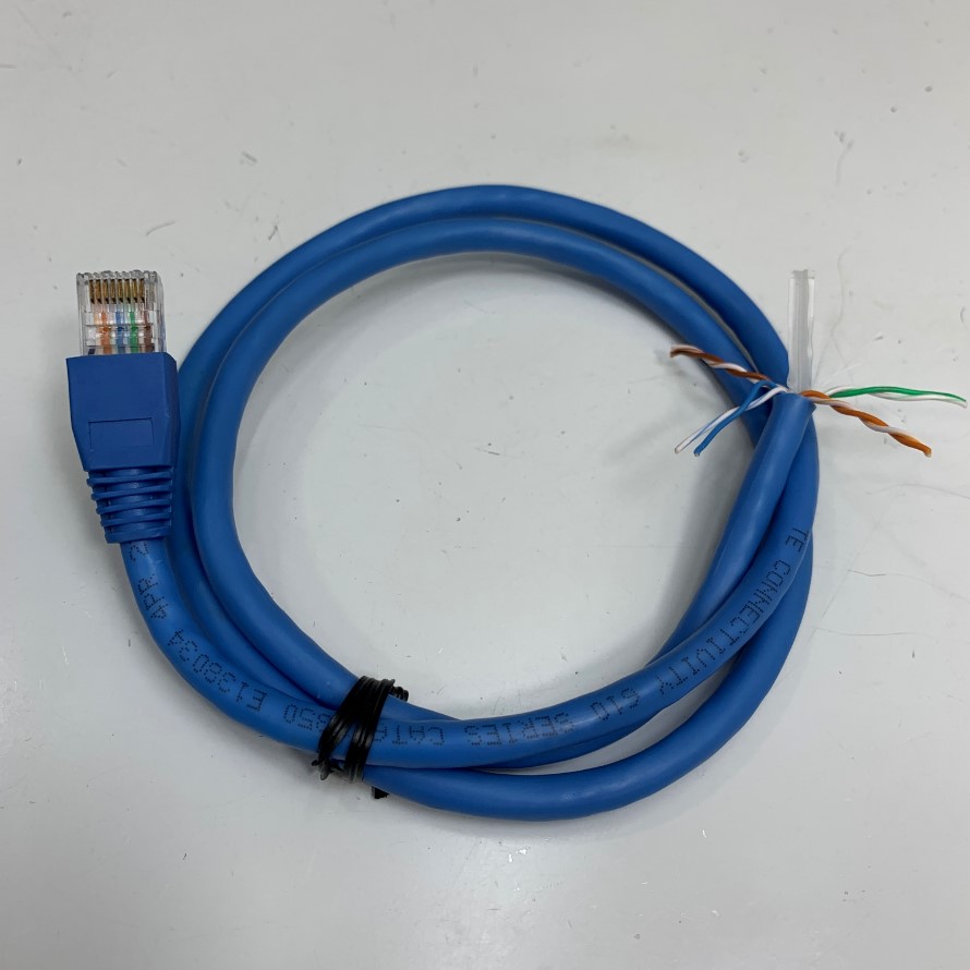 Dây Nhẩy COMMSCOPE AMP CAT6 U/UTP PVC E138034 Connector RJ45 to 8 Core Bare Wire Open End Dài 0.8M Cable 24AWG 4PR OD Ø 6.0mm 75°C Blue