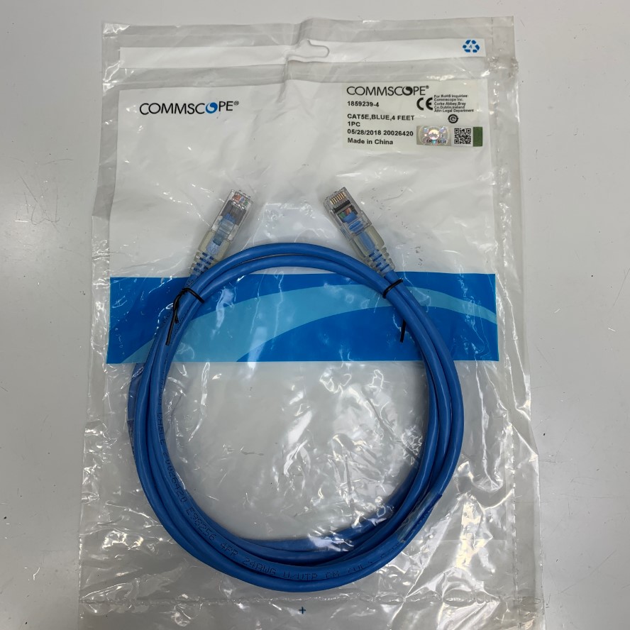 Dây Nhẩy COMMSCOPE CAT5E U/UTP PVC UL CM 1859239-1 Ethernet Gigabit Lan Network Patch Cord Straight Through Cable 24AWG OD Ø 5.5mm 75°C Blue Length 1.2M