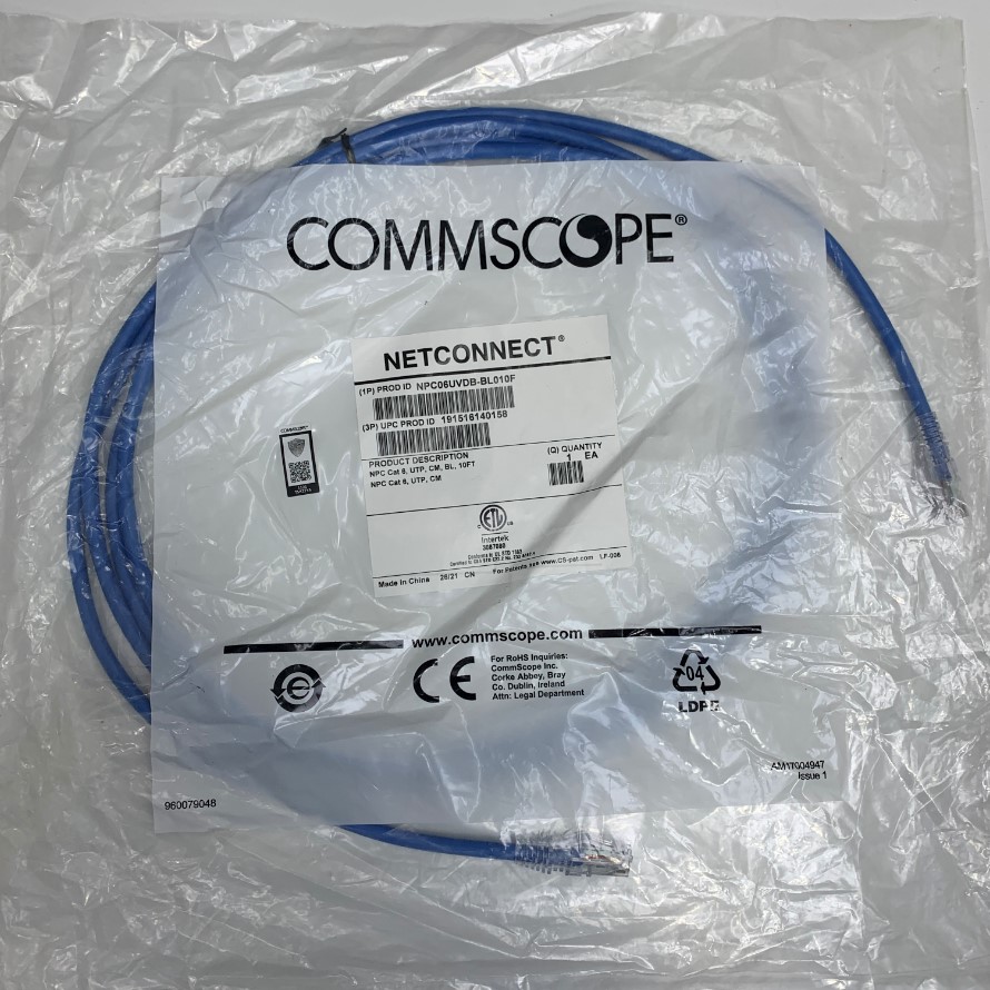 Dây Nhẩy Công Nghiệp CommScope NPC06UVDB-BL010F Dài 3M 10ft U/UTP CAT6 RJ45 Ethernet Gigabit Lan Network Patch Cord Straight Through Cable FJ03303 24AWG OD Ø 6.0mm 75°C Blue