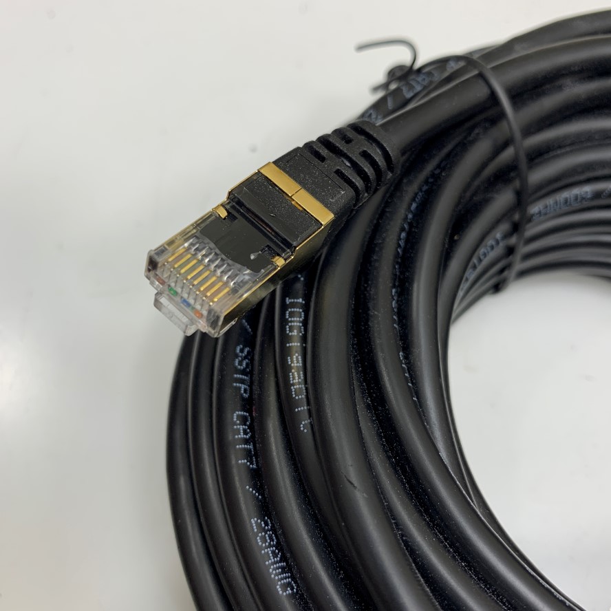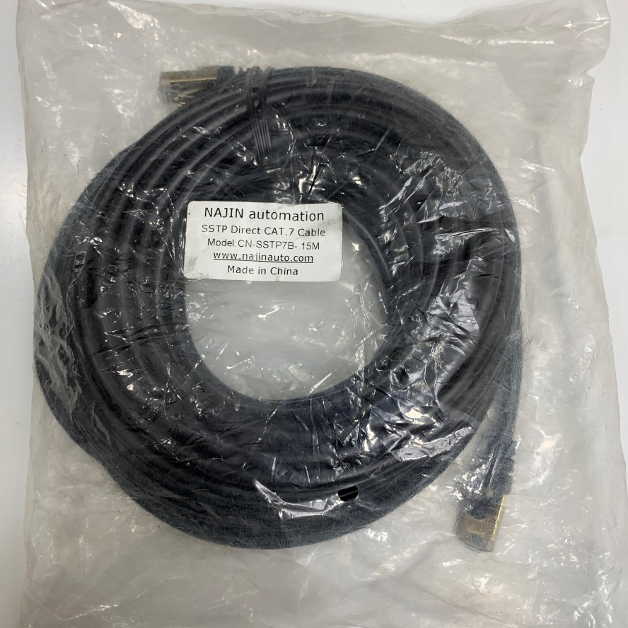 Dây Nhẩy Công Nghiệp Dài 15M 50ft NAJIN CAT7 10G 600MHz Ethernet Shielded Cable RJ45 Network Patch Cord PVC Jacketed Black S/STP 4PR 28AWG OD Ø 6.0mm For Computer, Industrial Cable
