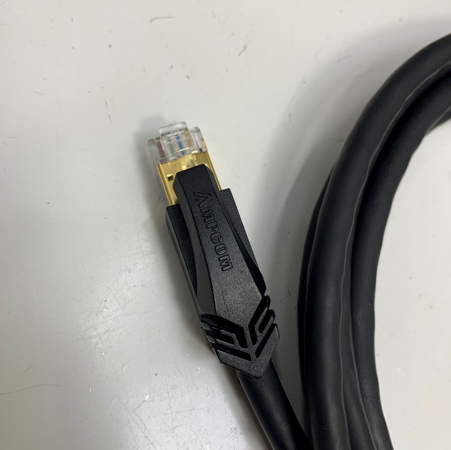 Dây Nhẩy Dài 1.5M 5ft AMPCOM CAT7 Shielded Twisted Pair Networking Cable RJ45 10 Gigabit 600MHz S/FTP 4PR 26AWG OD Ø 7.5mm Black For Industrial Network Cable