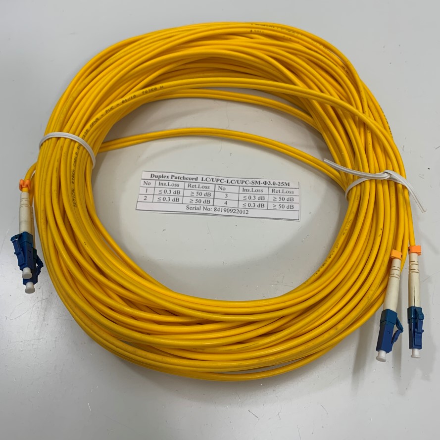 Dây Nhẩy Quang 1Gb 25M (75ft) LC UPC to LC UPC Duplex OS2 Singlemode PVC Yellow 9/125μm 3.0mm Fiber Optic Patch Cable