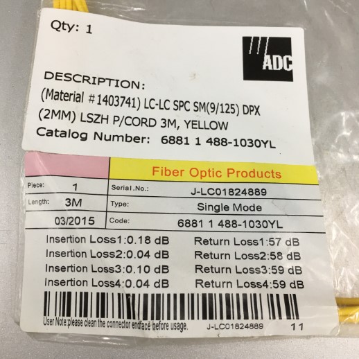 Dây Nhẩy Quang ADC Krone 6881 1 488-1030YL LC Duplex - LC Duplex Singlemode Patch Cable 2.0mm PVC Length 3M