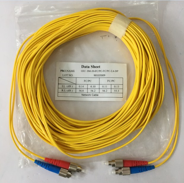 Dây Nhẩy Quang Data Sheet Fiber Optic Cable FC to FC Singlemode Duplex 9/125 2.4mm PVC Length 20M