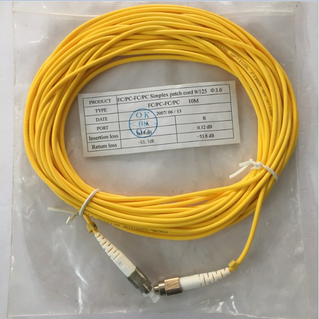 Dây Nhẩy Quang FC/PC to FC/PC 9/125 Simplex Singlemode Fiber Optic Cable Patch Cord 3.0mm PVC Length 10M