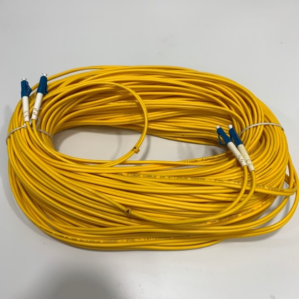 Dây Nhẩy Quang LC UPC to LC UPC Duplex OS2 Single Mode PVC 3.0mm Fiber Optic Patch Cable Yellow 60 Meter