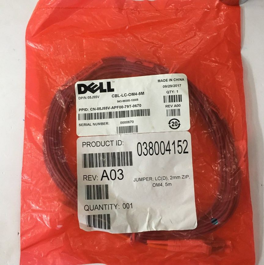 Dây Nhẩy Quang OM4 LC to LC Duplex 5M DELL 05J55V Multimode Fiber Optic Patch Cable OS2 50/125 2.0mm PVC Length 5M