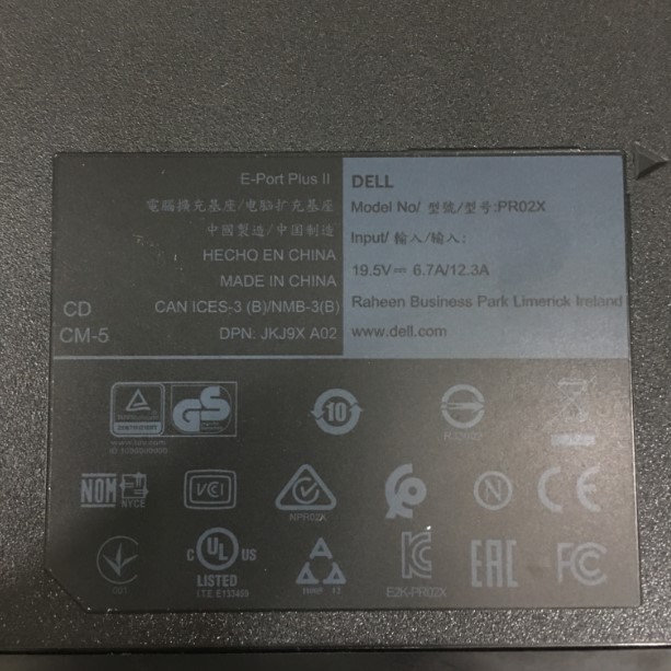 Dell Dock Station E Port Plus II PR02X 035RXK USB 3.0 T4 240W Power Supply