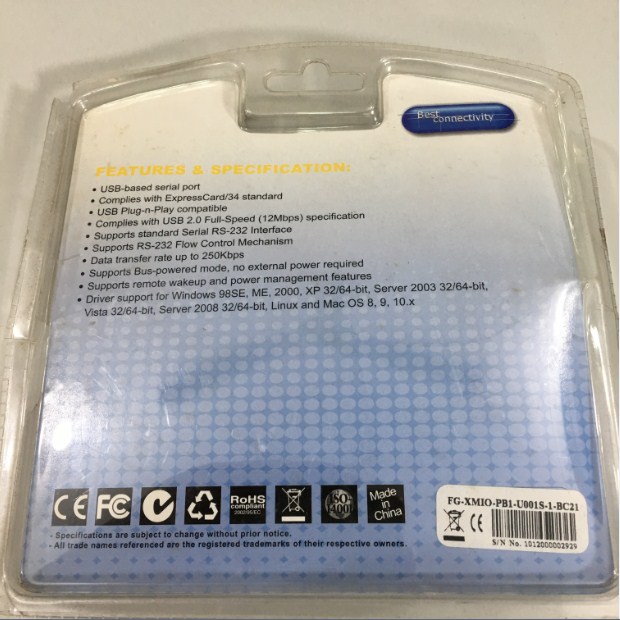 Express Card 34mm to RS232 Serial DB9 COM 1 Port FG-XMIO-PB1-U001S Adapter