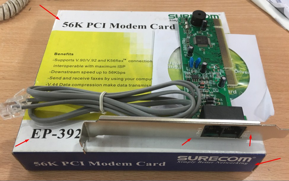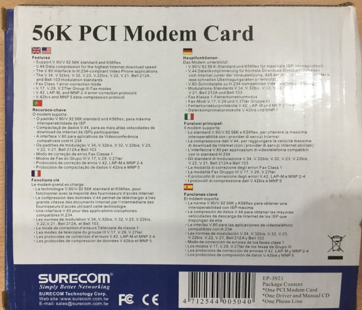 Fax Modem 56K Dial-Up Internet Internal Card PCI 4X SURECOM EP-3921 NETWORKS CARDS Chip MOTOROLA 0636DFEA07
