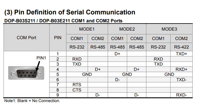 Rắc cắm kết nối Delta HMI DOP-B Series: DB9 Male (thuật ngữ kỹ thuật đầu kết nối cổng Com 9 chân hai hàng chân cắm dương)