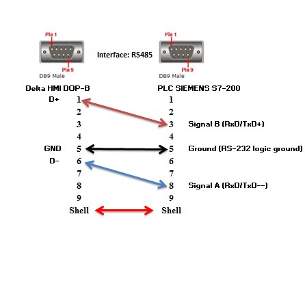 Cáp Kết Nối Điều khiển PLC SIEMENS S7-200/300 Với Màn Hình Delta HMI DOP-B Series HMI Qua Giao Thức RS485 Connector Cable DB9 Male to DB9 Male với Màn hình cảm ứng HMI Delta HMI DOP-B Series  Touch Panel thông qua giao thức kết nối RS485. Mỗi một thiết bị tương ứng với một chuẩn kết nối tín hiệu khách nhau vì vậy người sử dụng cần nắm được mục đích kết nối, giao thức kết nối để mua đúng sản phẩm cần dùng cho từng thiết bị và model tương ứng.