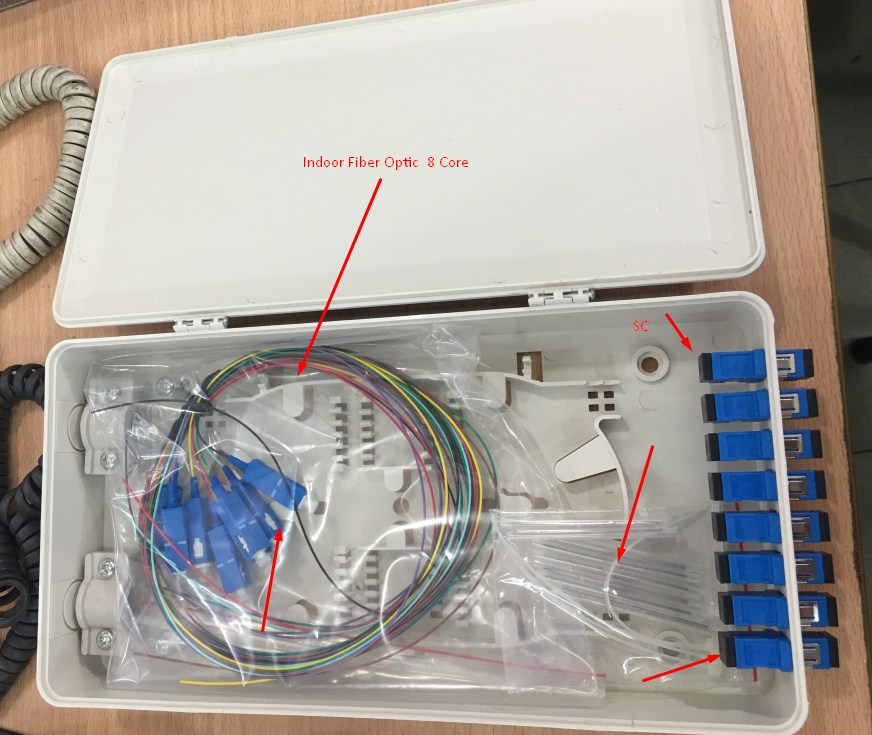 Hộp phối quang Indoor Fiber Optic Distribution 8 Ports SC Box Tính năng, đặc điểm của hộp phối quang Hộp phân phối quang 8 Pors SC Box, chất liệu nhựa ABS, dễ dàng lắp đặt treo trên tường hoặc đặt trên mặt sàn, mô dun Adapter đi kèm