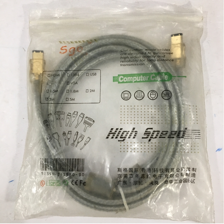 Cáp IEEE 1394a FireWire Cable 6 Pin to 6 Pin Hàng Chất Lượng Cao PowerSync E119932-T AWM STYLE 20276 80°C 30V VW-1 Tốc Độ Truyền Dữ Liệu Lên Tới 400Mb / giây Clear Color Length 3M