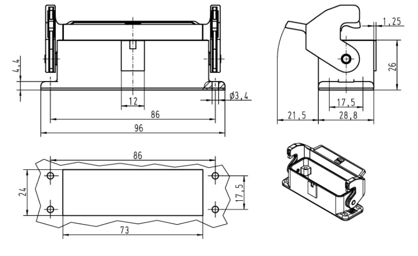 Jack Panel 09200160301 HARTING Heavy Duty Power Connector HDC Size 16A Han A with latch Low Profile