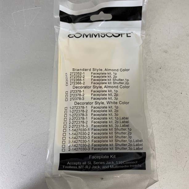 Mặt Chữ Nhật 1 Cổng Commscope Outlet RJ45 Wall Plate White 272368-1 Faceplate Kit shuttered 1 Port