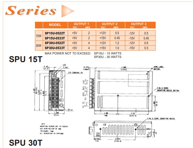 Nguồn Tổ Ong 5V 2A 12V 0.5V -12V 0.5A SP15U-0522T Volgen America/Kaga Electronics