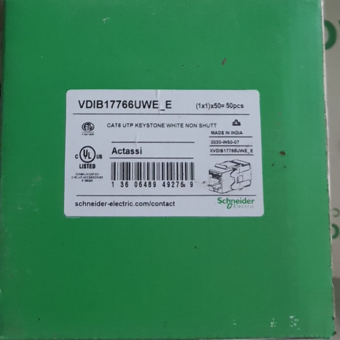 Nhân Mạng Schneider Electric VDIB17766UWE_E Modular Jack RJ45 CAT6 White Actassi S-110 Connector