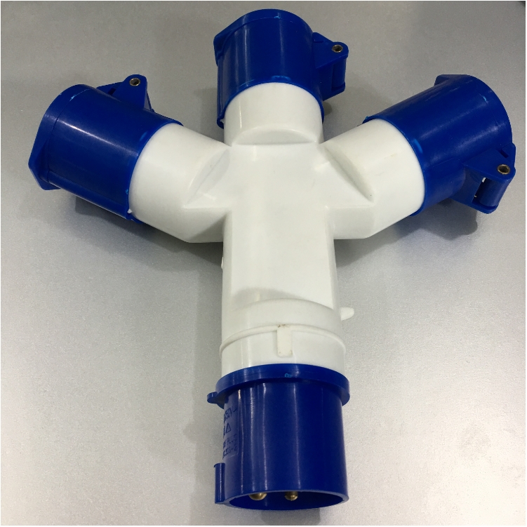 Ổ Cắm Công Nghiệp Industrial MultIPle Socket Outlet China Power Connector 16A 2P+E 250V 3 Way Y Splitter Plug IP44 IEC309-2 SF-1013