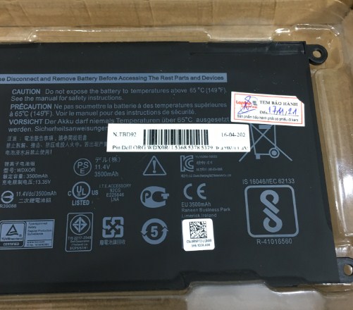 Pin Máy Tính Xách Tay Dell WDX0R 42WH For Dell Inspiron 15 5565 5567 5568 5578 7560 7570 7579 7569 P58F 13 5368 5378 5379 7368 7378 14-7460 Series Laptop Battery