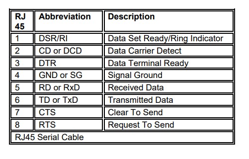 RS-232D EIA/TIA-561 RJ45 Pinout