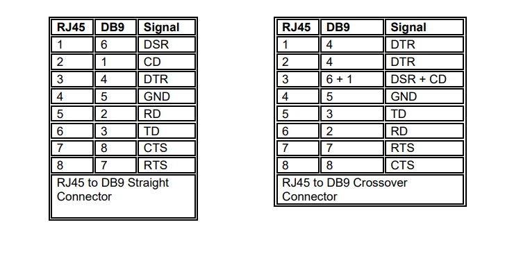 It's certainly possible to wire your RJ45/DB9 connectors following this pinout. If you do, please mark the