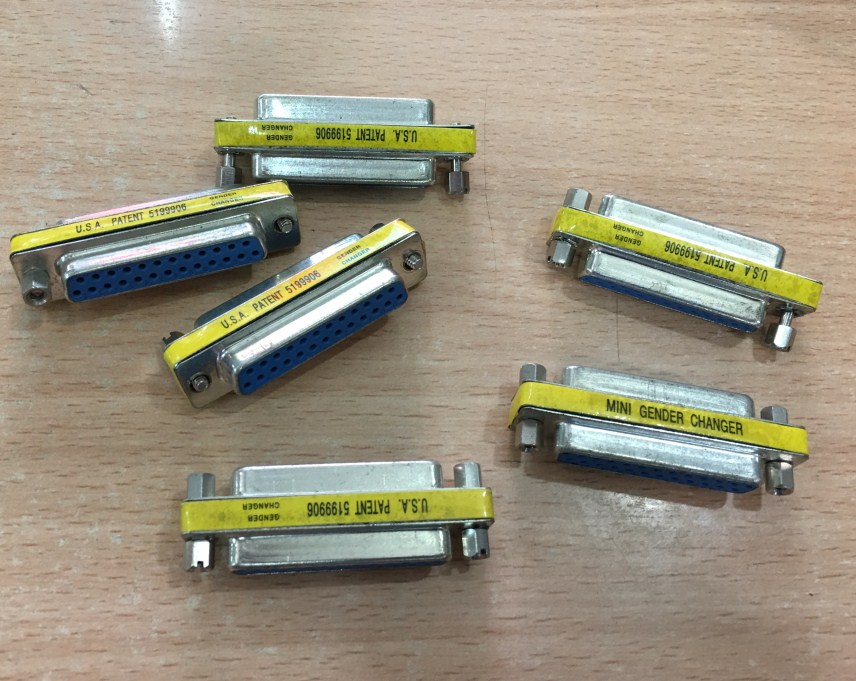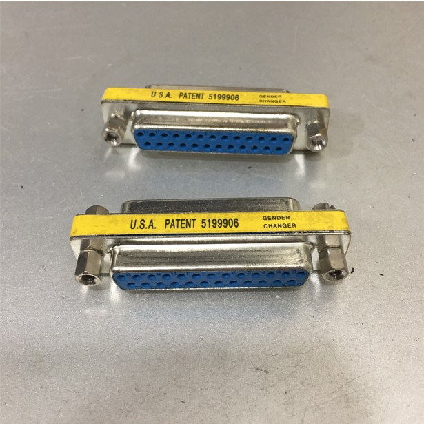 Răc chuyển Converter Connector DB25 RS232 25Pin to 25 Pin Serial Port Female to Female Răc chuyển đổi Converter Connector DB25 RS232 25Pin to 25 Pin Serial Port Female to Female dùng cho Máy tính, máy in, Máy PLC, máy đo địa chất, ứng dụng CMC.... Dùng chuyển đổi đầu DB25 RS232 25Pin Male trên thiết bị thành DB25 RS232 25Pin Female, chuyển đổi đầu nối trên cáp.