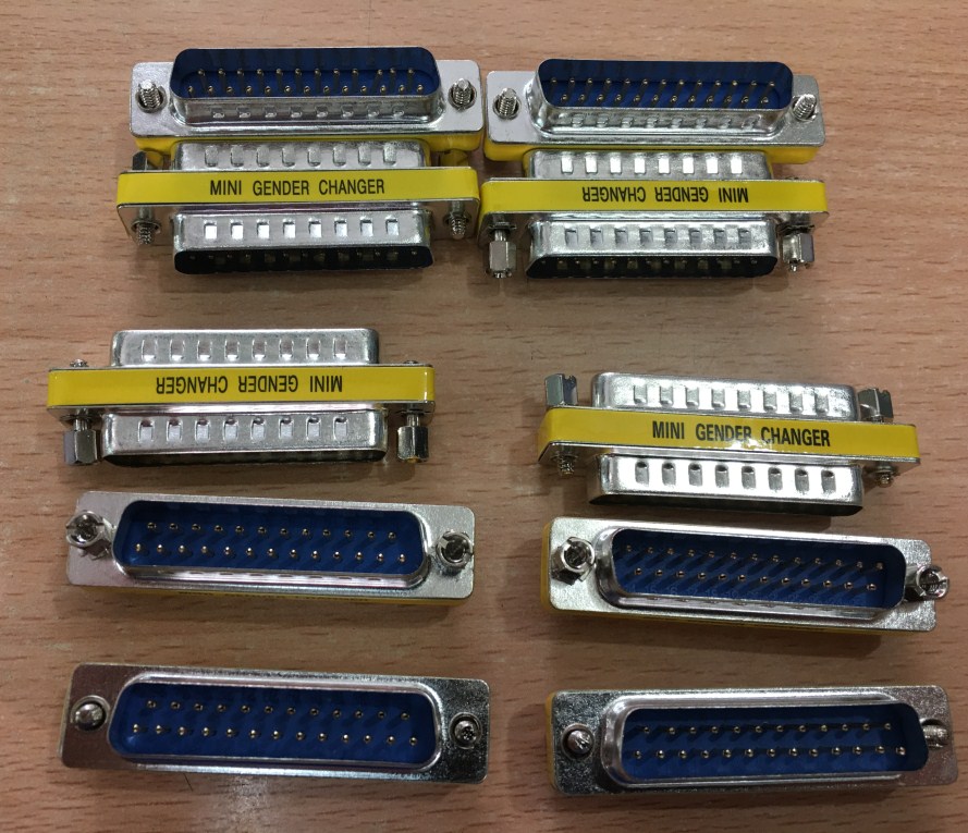 Răc chuyển Converter Connector DB25 RS232 25Pin to 25 Pin Serial Port Male to Male Răc chuyển đổi Converter Connector DB25 RS232 25Pin to 25 Pin Serial Port Male to Male dùng cho Máy tính, máy in, Máy PLC, máy đo địa chất, ứng dụng CMC.... Dùng chuyển đổi đầu DB25 RS232 25Pin FeMale trên thiết bị thành DB25 RS232 25Pin Male, chuyển đổi đầu nối trên cáp.