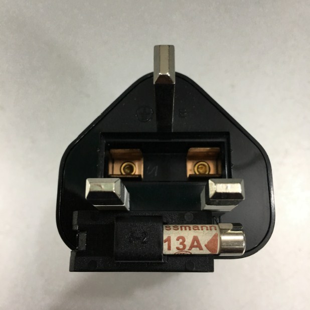 Rắc cắm nguồn cấp điện: BS1363 UK Plug (3 chấu chuẩn Anh UK có cầu chì 13A 250V)