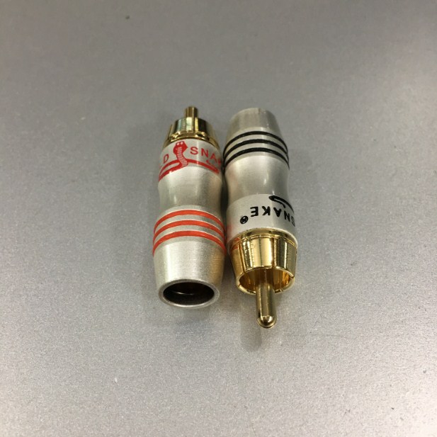 Rắc Hàn Gold Snake RCA Male Plug Jack Audio Speaker AV Video Cable Diameter 8mm Black-Red Connector Adapter 2PCS