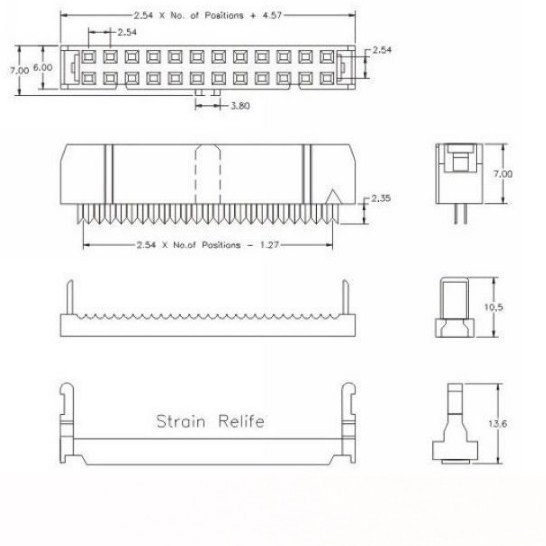 .1"x.1" (2.54x2.54mm) DUAL ROW IDC