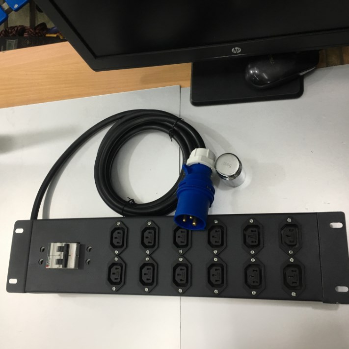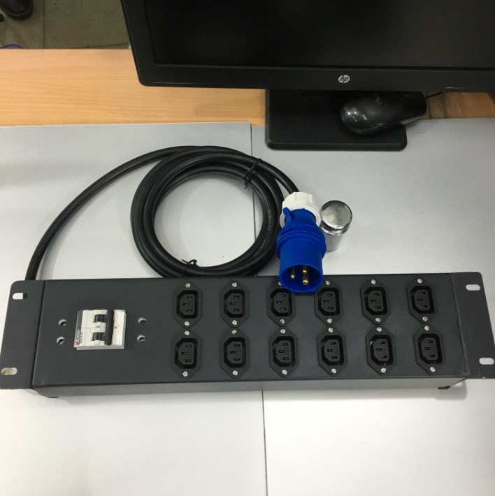 Thanh Nguồn PDU 2U Rack 19 12 Way IEC C13 Outlet Có MCB BHW-T4 C32 MITSUBISHI Công Suất Max 16A 250V to IP44 IEC309-2 Plug Power Cord 3x2.5mm Length 3M