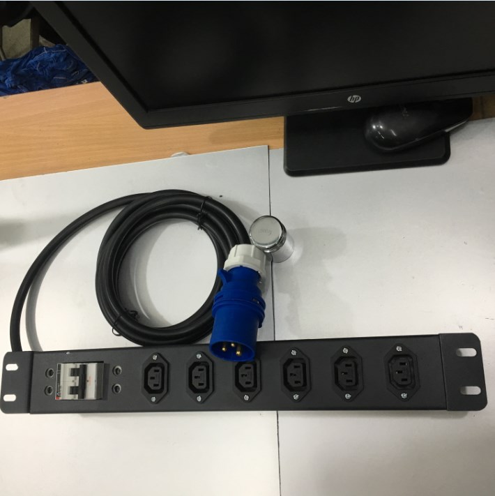 Thanh Nguồn PDU 1U Rack 19 6 Way IEC C19 Outlet Có MCB BHW-T4 C32 MITSUBISHI Công Suất Max 16A 250V to IP44 IEC309-2 Plug Power Cord 3x2.5mm Length 3M