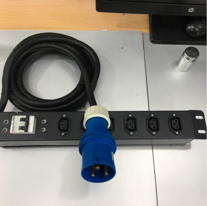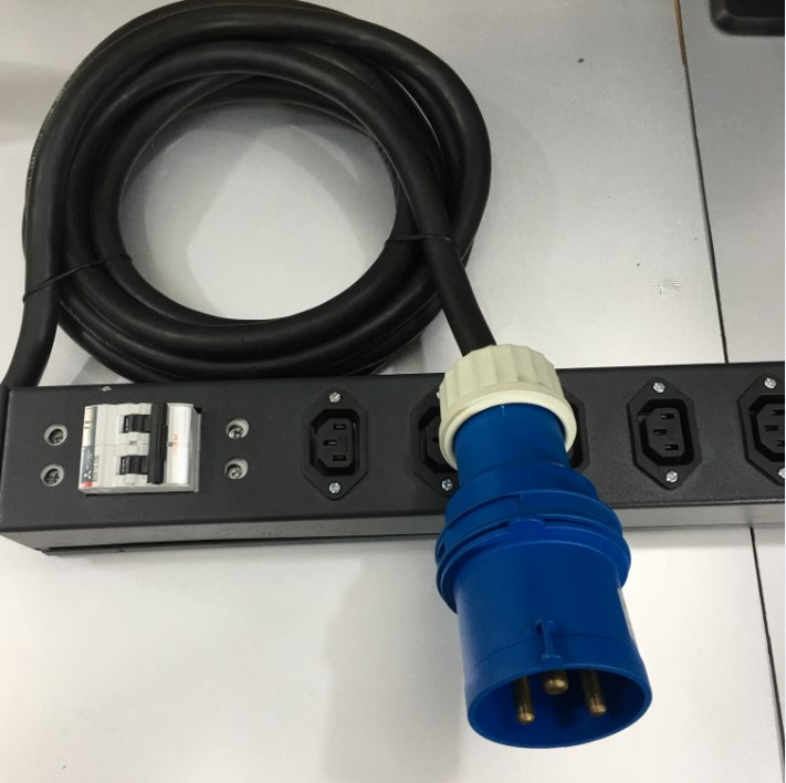 Thanh Nguồn PDU 1U Rack 19 6 Way IEC C13 Outlet Có MCB BHW-T4 C32 MITSUBISHI Công Suất Max 32A 250V to IP44 IEC309-2 Plug Power Cord 3x4.0mm Length 4.5M