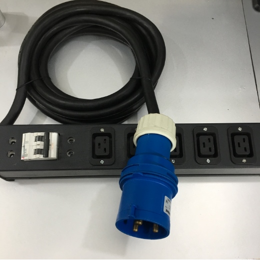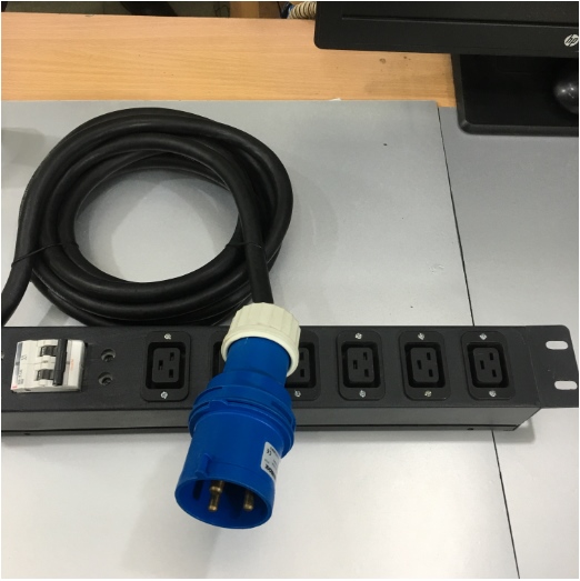 Thanh Nguồn PDU 1U Rack 19 6 Way IEC C19 Outlet Có MCB BHW-T4 C32 MITSUBISHI Công Suất Max 32A 250V to IP44 IEC309-2 Plug Power Cord 3x4.0mm Length 4.5M