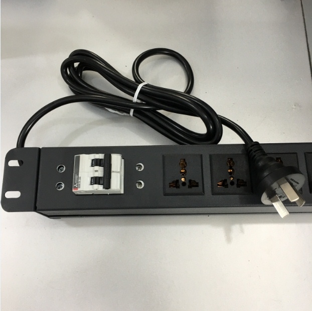Thanh Nguồn PDU Rack Mount 19 inch 1U Universal 6 Way UK Outlet Có MCB Công Suất Max 20A Australia & China Plug Power Cord 3x1.5mm² Length 2.5M